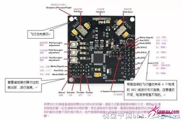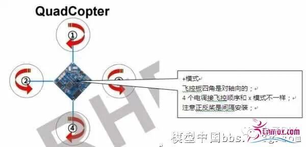 特别注意,x模式和+模式的飞控安装是不同的(我只有kk飞控板,所以只能讲kk飞控)。