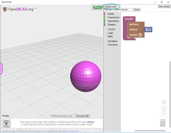 一个简单的程序命令,然后点击“update code”更新代码,左侧就是一个新鲜的圆球了。